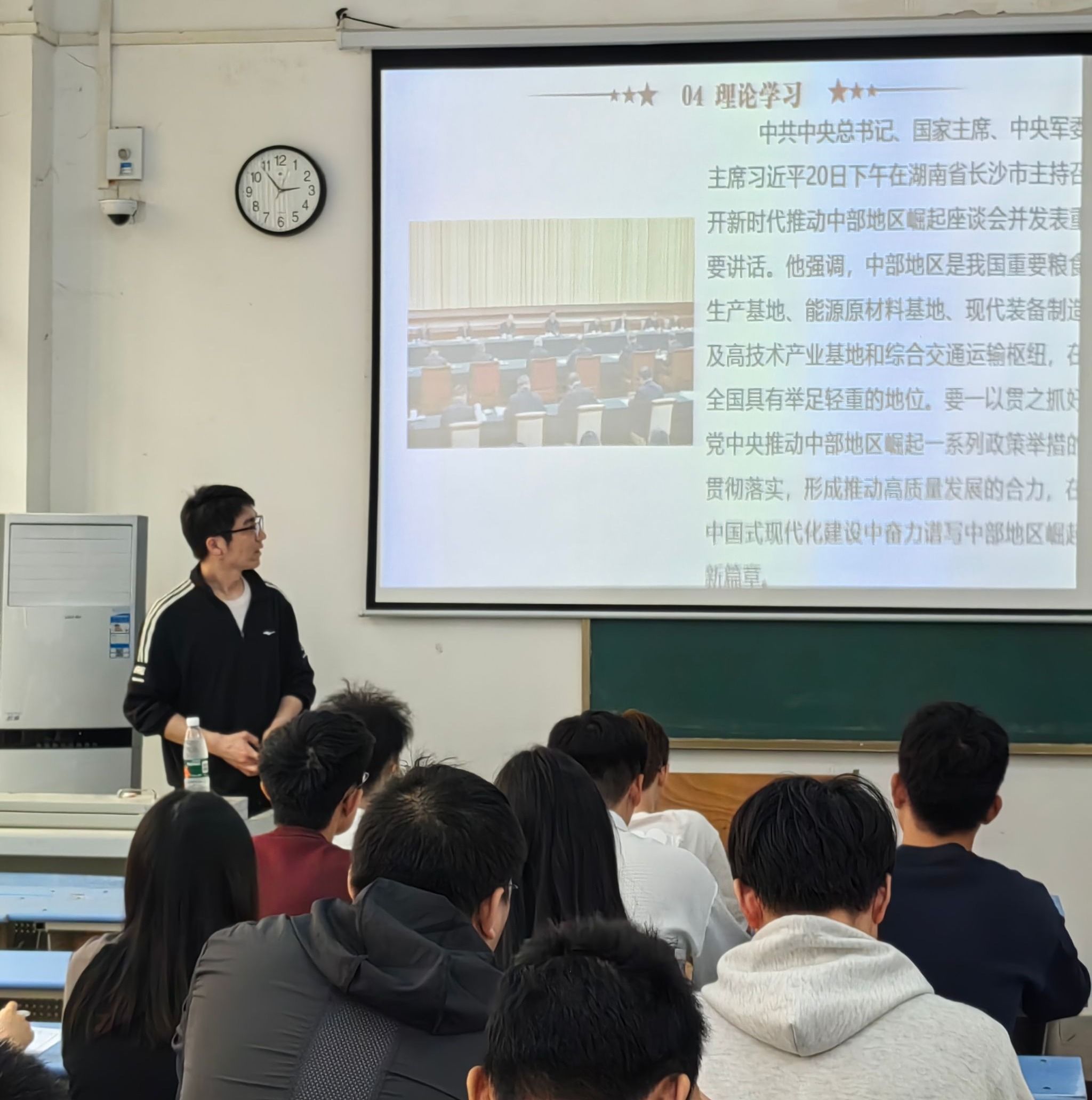 活动开始前,全体党员集体重温入党誓词、诵读党章、集中学习习近平总书记重要讲话和指示批示精神,学习了习近平总书记在新时代推动中部地区崛起座谈会上的重要讲话《在更高起点上扎实推动中部地区崛起》和党规党纪有关内容。随后,开展“4·15”全民国家安全教育日专题学习,支部书记洪迪围绕什么是国家安全、党的二十大报告关于国家安全的论述,并结合反面典型案例就青年大学生如何践行国家安全等方面进行了宣讲。他指出,本次主题党日活动以“总体国家安全观·创新引领10周年”为主题,主要通过开展理论宣讲、集中收看“千万高校学生同上一堂国家安全教育课”直播公开课、观看境危害国家安全典型案例、国家安全知识竞答、倡议签名等方式,旨在全面普及国家安全知识,引领师生树立正确的国家安全观念,切实增强师生的国家安全意识和能力,使总体国家安全观更加深入人心。