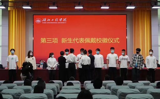 党委书记万建华、院长路亚妮为新生代表佩戴校徽、赠送图书。