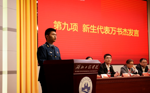 新生代表万书杰同学分享了自己的军旅生活,表示作为当代大学生应当树立正确的人生规划,珍惜美好时光,为自己的青春和梦想努力奋斗。