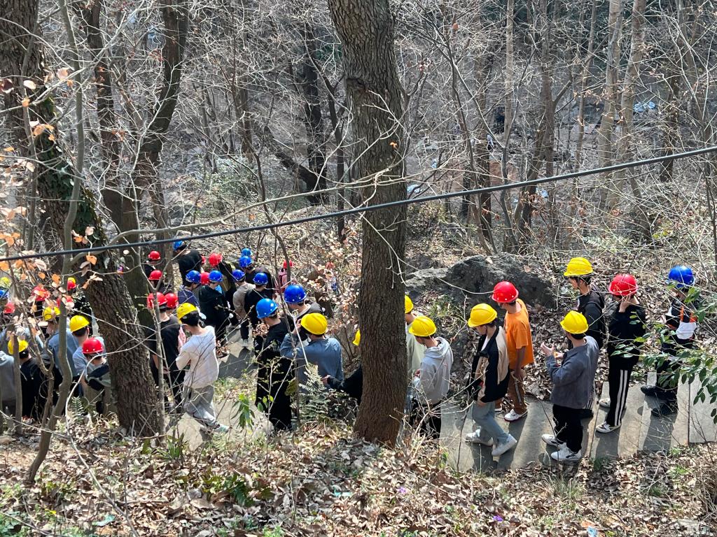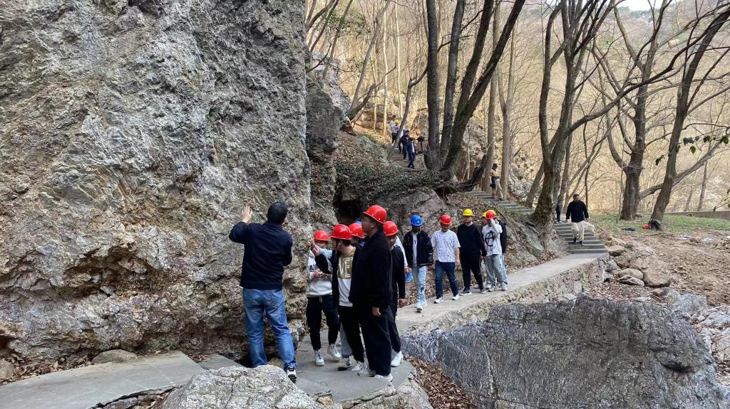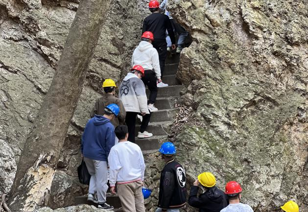 3月7日,在两王洞(溶洞区域)参观考察期间,学生们通过现场操作罗盘等测量仪器仪表,对岩溶地形进行实地观测,剖析了岩溶地表水或地下水对可溶性岩石侵蚀后产生的一系列地质现象,熟悉了野外地质测量装备操作等现场实用技术。