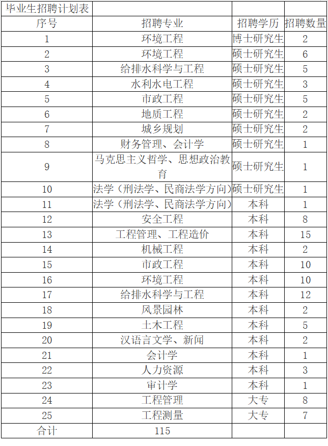 给排水科学与工程、水利水电工程、市政工程、地质工程、安全工程、工程管理、机械工程、风景园林、土木工程、环境工程、城乡规划等相关专业。