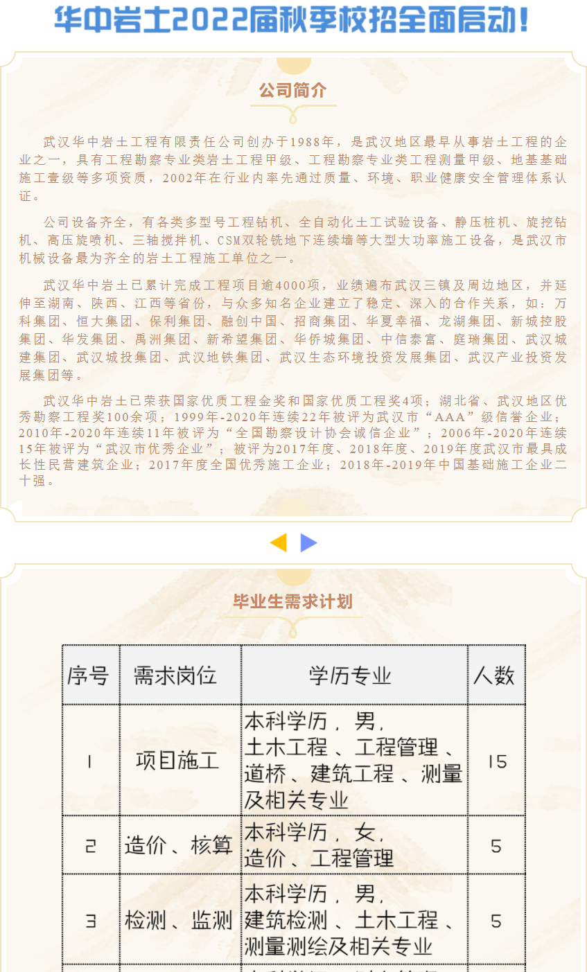 武汉华中岩土工程有限责任公司2022年校园招聘简章