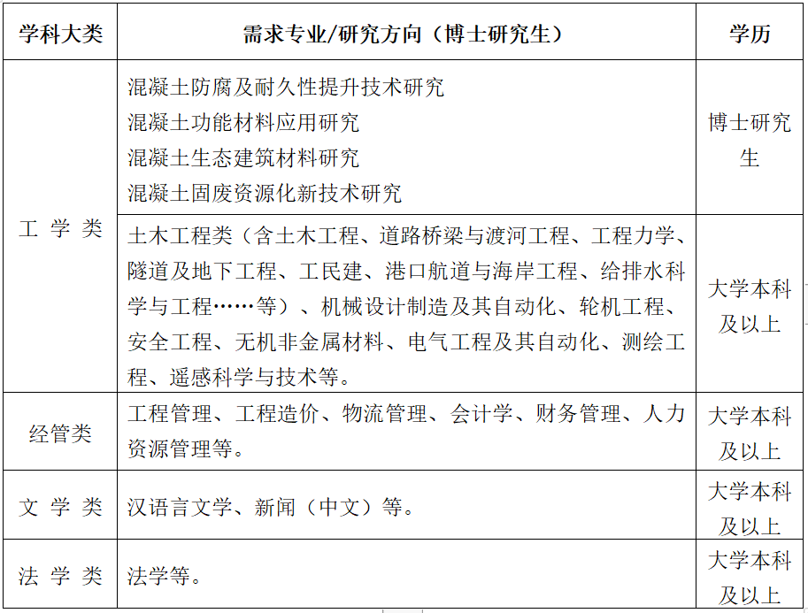基本要求:具备良好的政治素质、身心健康、品学兼优;国内公办高校全日制大学本科及以上学历、专业对口;认同中铁大桥局企业文化,有良好的职业素养和吃苦耐劳精神。