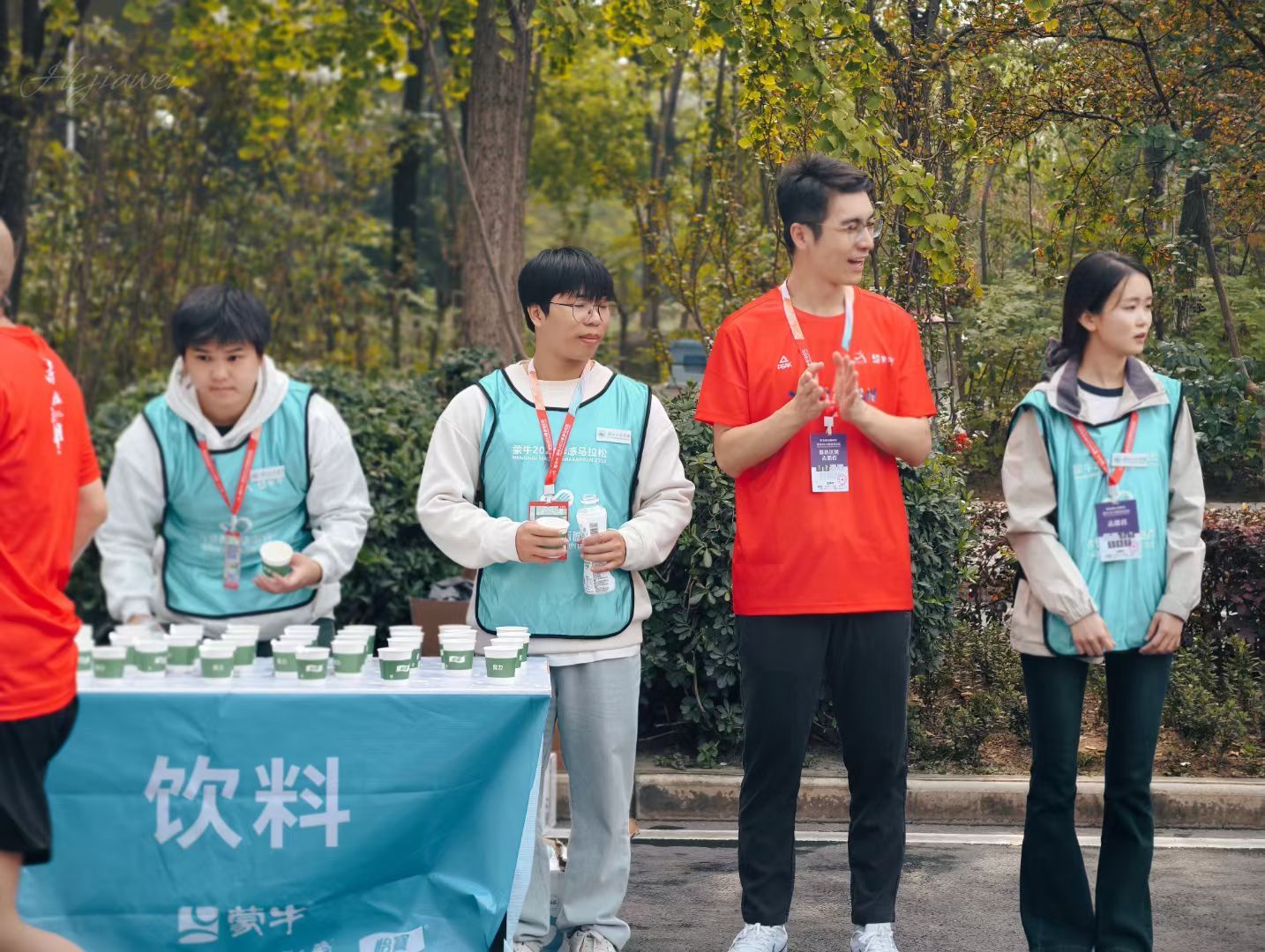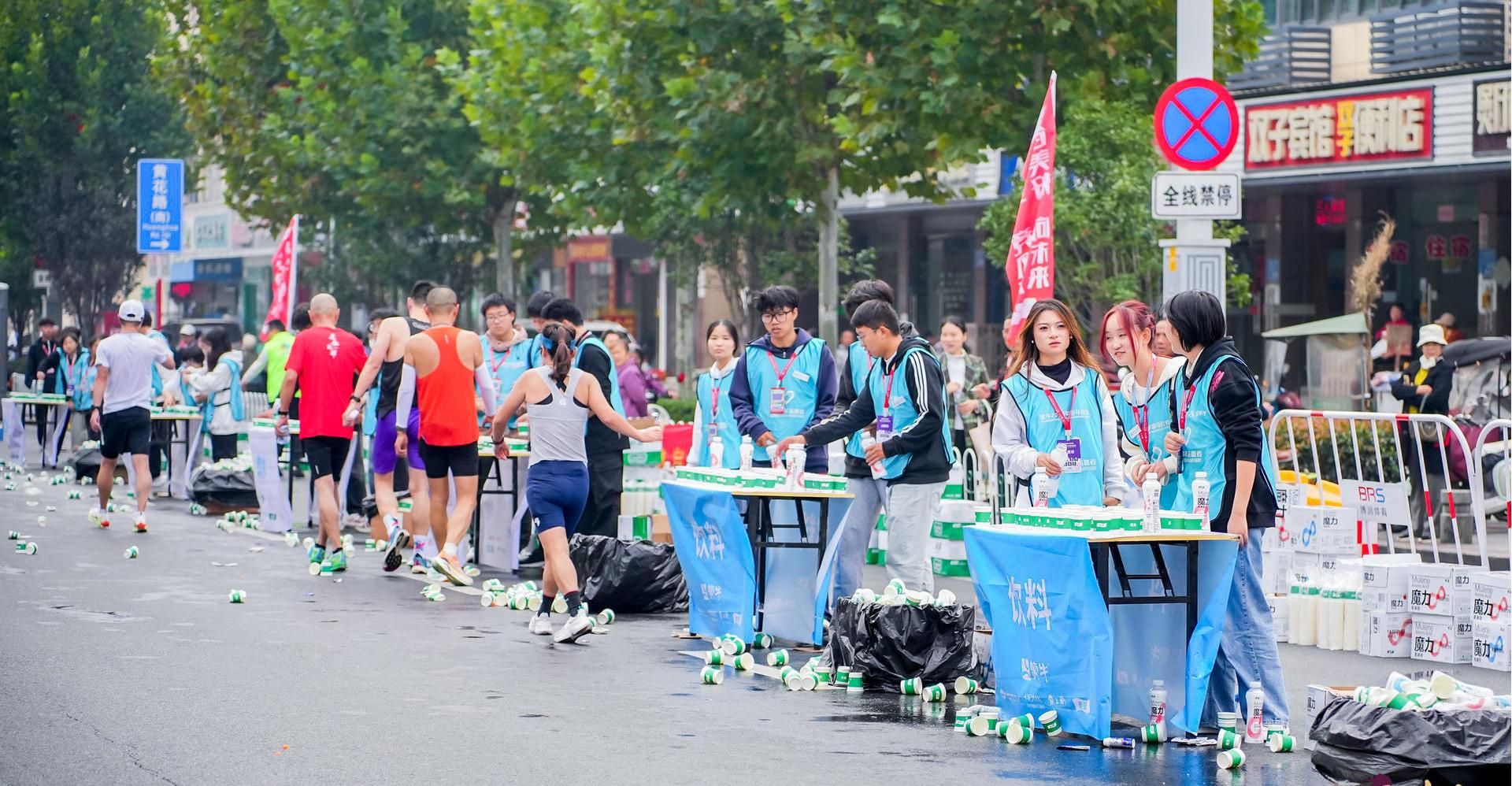 比赛开始后,参赛者们陆续经过补给点。“辛苦了,加油加油”志愿者欧阳晴子一边忙着提供服务,一边用热情的微笑和激昂的加油呐喊。“工作虽然辛苦,但能实实在在地为参赛者们做点事,就心满意足了。”欧阳晴子说,这也是她第一次报名参与马拉松志愿服务,希望能将这份热情和温暖继续传递下去。