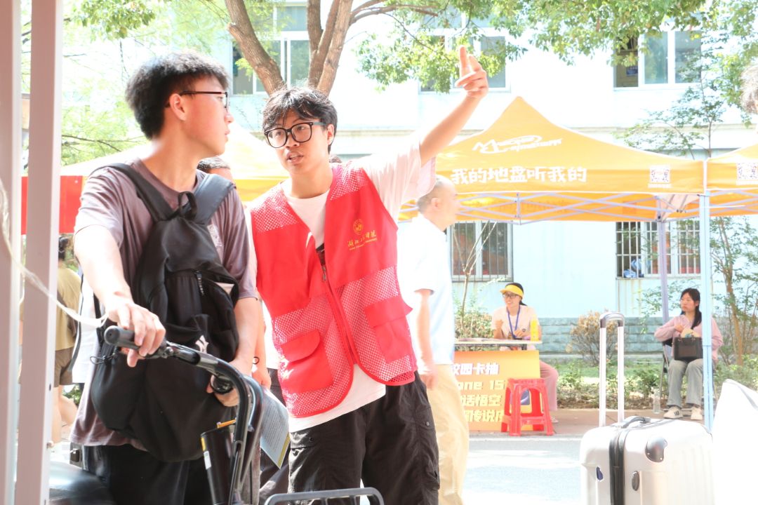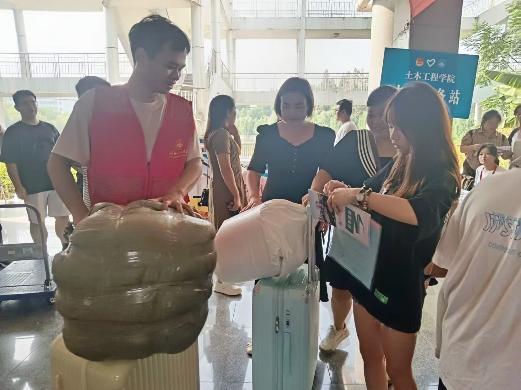 迎新当天,由学院分团委学生会、青协及众多学生志愿者组成的迎新志愿服务队以高度的责任心投入到工作中,他们面带微笑,热情服务,为新生提供咨询引导、行李搬运、入住办理、学籍注册等一站式服务,确保每位新生都能顺利、愉快地完成报到手续。学院领导深入迎新现场,与2024级新生及家长亲切交谈,慰问迎新工作人员和学生志愿者。